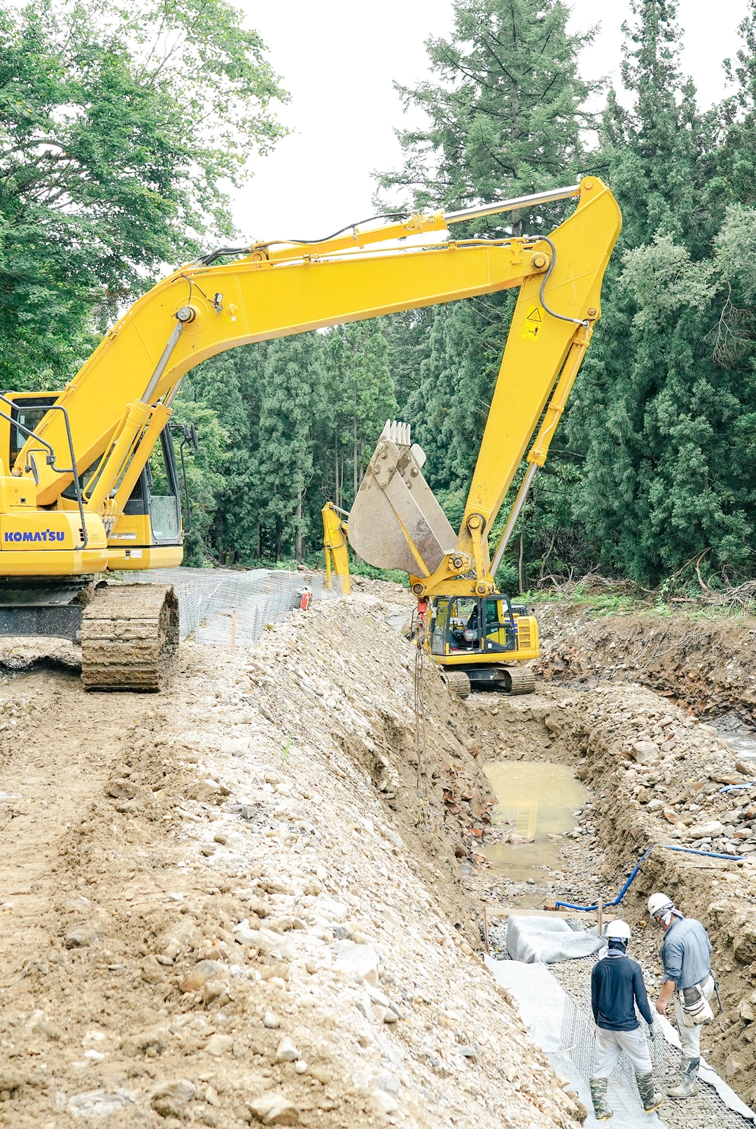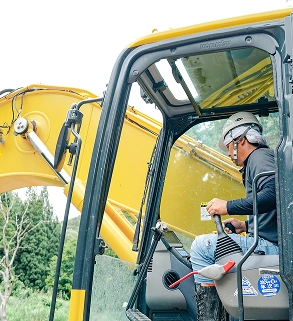 当社は地域の安全と暮らしを守るため、護岸工事・災害復旧工事・水路工事・解体工事などを幅広く手がけています。